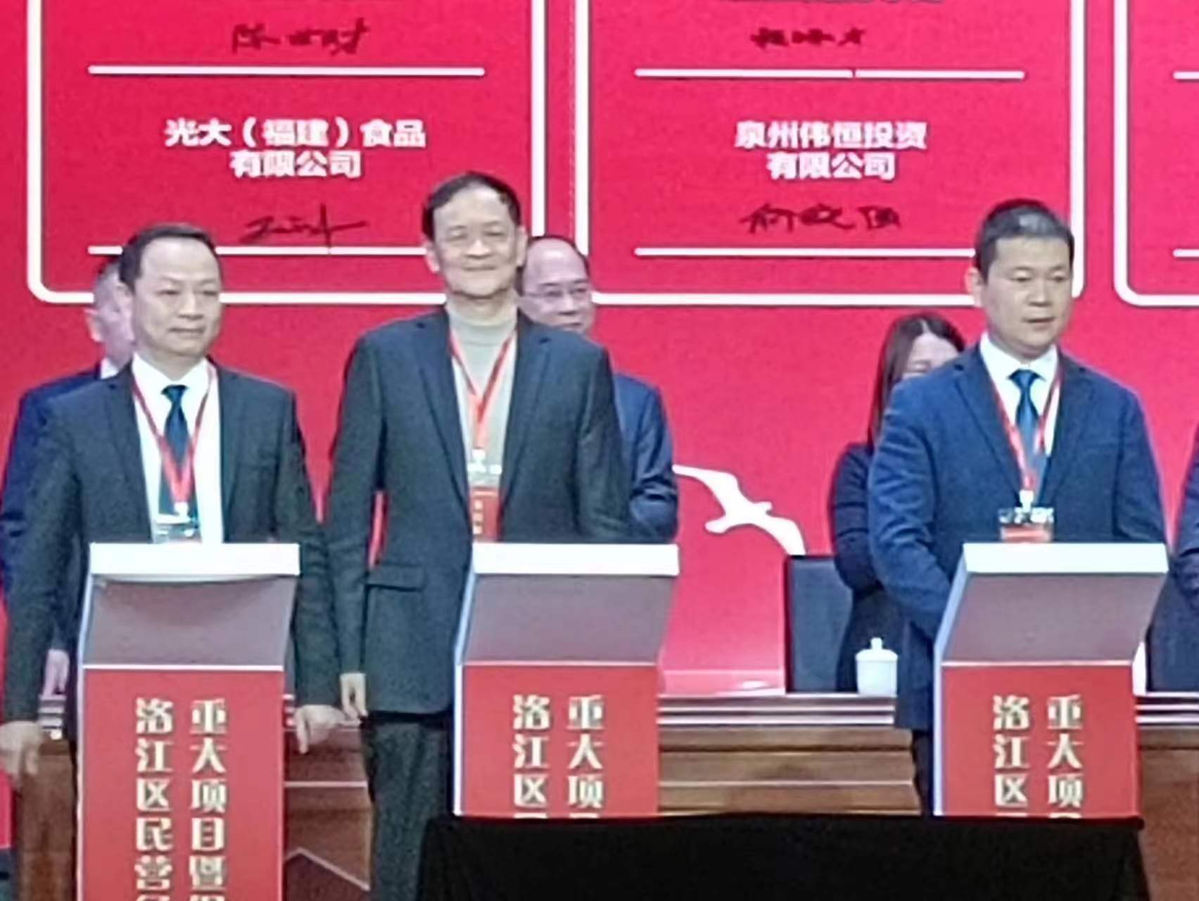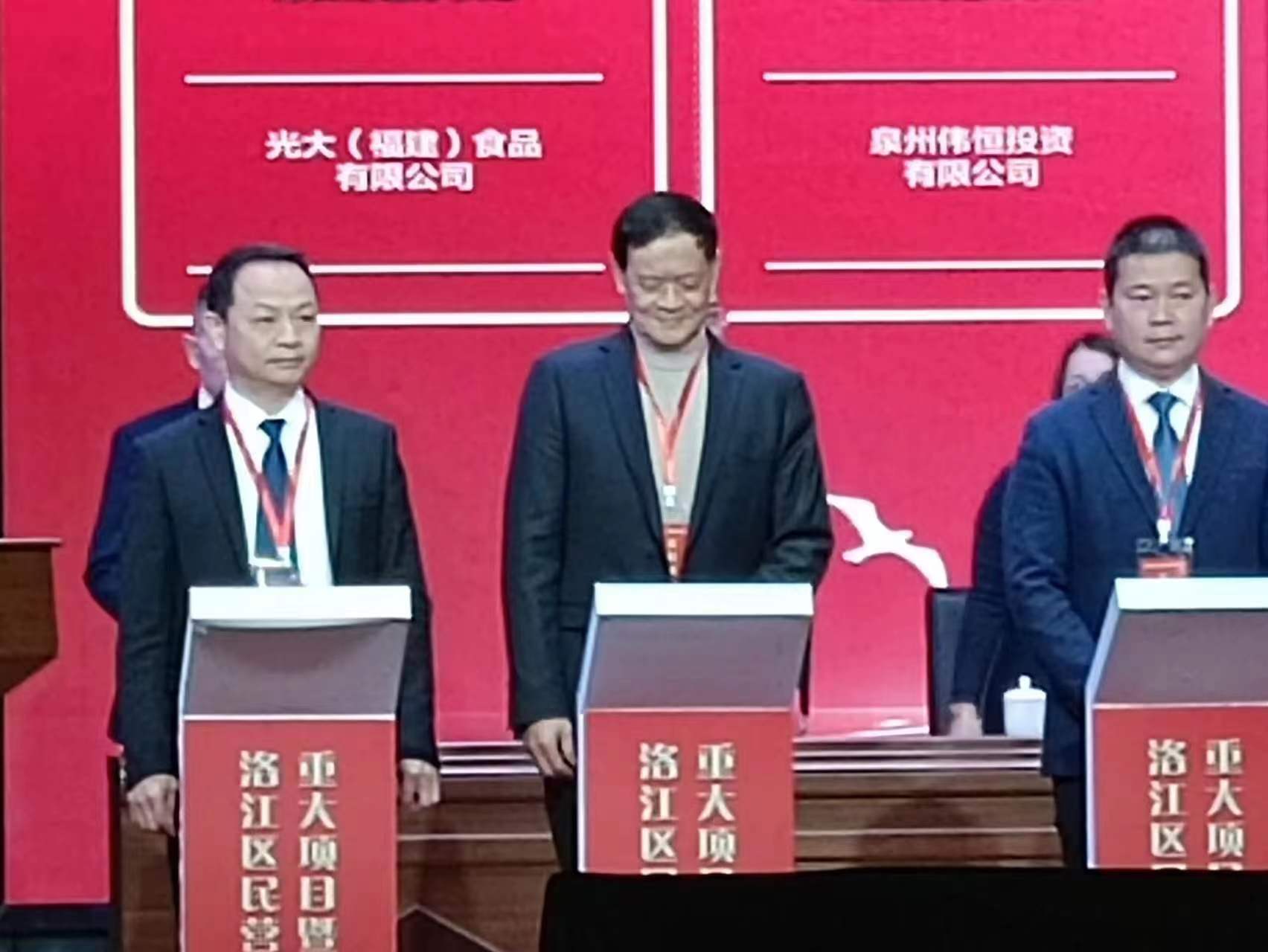 2023年1月31日光大(福建)食品有限公司负责人王文琳代表公司参加泉州市洛江区民营经济发展大会重点投资项目签约仪式。